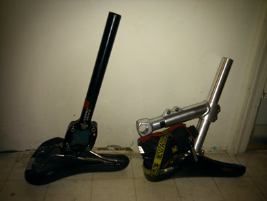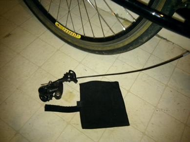 Secure the fork spacer into the dropouts. Put padded stuff on