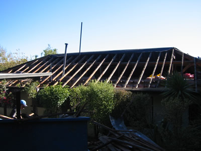 It does seem we (and many other foreign folk - English, Canadian, etc.) prefer our home warmer than most kiwis, but I am truly amazed by the lack of heat here. Our house is not unique in this regard! I should add that lots of folks here use woodstoves and open fireplaces. This is a great source of pollution here in the winter. The haze from wood fires on what should be clear starry nights is amazing. The smell is pretty intense too. The powers that be are trying to encourage use of low-emission type heating, but they don't offer any incentives like tax breaks, or such, so most folks just throw another wet log on the fire. So while we were shopping for roofs, we also began looking at heat, and we came to the same conclusion we had in Massachusetts. A free-standing gas fire would be the most economical, energy efficient, clean source of heat and satisfy Pamela's need for a warm cosy looking fire. We even found a Jotul free-standing gas stove just like the one we had in the kitchen in Chelmsford. We had a plumber come out to give us an estimate for installing it, and then tried to buy the stove. Despite telling us before that they had one in stock, it turned out this store didnt and couldn't get one anytime this year. We happened to walk past Four Seasons, another place that also carried this brand of stove. We asked if they had it in stock and they said yes. They had one of the showroom floor. But after looking at it and noticing that it did not have a fan, we asked about getting a fan and thermostat, and we were told it came with a fan and we could get a thermostat. So we had their gas fitter, Brian, come around and give an estimate. We had in mind putting it in a corner, but wondered about venting through the wall, since the deck just outside was covered. Brian suggested venting through the roof. He would use an offset so we could go around the ridge of the roof. Since we were having the roof redone, he'd co-ordinate with the roofers, and get the vent in while they had the old roof off. So we went back in and paid for the stove. Then we tried to get the roofers to commit to a date, so we could book the gas fitter. The roofers said they'd start between 8 and 10 May, weather dependent. On Monday the 6th, they called to say it would be Friday the 10th. So we booked the gas fitter for that Friday, and prayed for good weather.