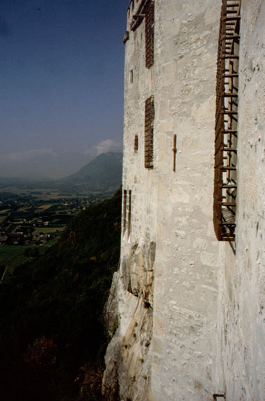 Chateau de MiolansWe stopped at a hotel not too far from that chateau up on the hill we had seen on the way up. I found a flyer indicating it was open to the public. It was the Chateau de Miolans. It had been used as a prison at times, and its most famous guest was the Marquis de Sade. The climb up to the castle was one of the toughest of the trip.