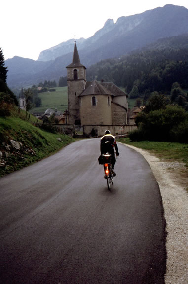 Soup is for GranniesWe got into Chambery and found the tourist office. There we found this wonderful selection of maps. The area was covered in routes, the world championship course on which Greg Lemond won, as well as many others. We decided to stay in Chambery a couple of days and do some unencumbered day rides. There was a regional train which David could take back to Lyon, so he could stay with us longer. Our first loop was south over the Granier. It started out a bit overcast, so we carried mountain gear (rain jackets, leg warmers, etc). You can see we had warmed up a bit at the top of the first climb, but fortunately we were sitting inside the coffee shop when the storm rolled through. It was quick, but intense.