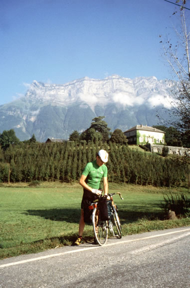 We made it saefly into Moutiers, where we found lodging and dried out. The next day was back to that brilliant sunshine and warmth. I was plotting more climbing when John told us his throat was getting sore. We decided to be prudent and head back toward base. We stopped in Albertville to check out bike shops and did buy a few things. Then we pressed on back toward Chambery.
