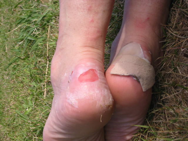 new shoes, and she had developed some pretty nasty blisters by the end