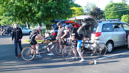 I wasn't willing to give my seat up again, but we asked Todd and Kristen if they might like to ride together for the race and they jumped at the chance. Various scheduling conflicts meant we couldn't all ride together before the race, but we did manage to get Todd and Kristen on his tandem for a 100+ mile test ride. They killed us on that ride, so we had no doubts that they would do fine together on race day. Next up - Team Name