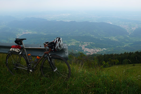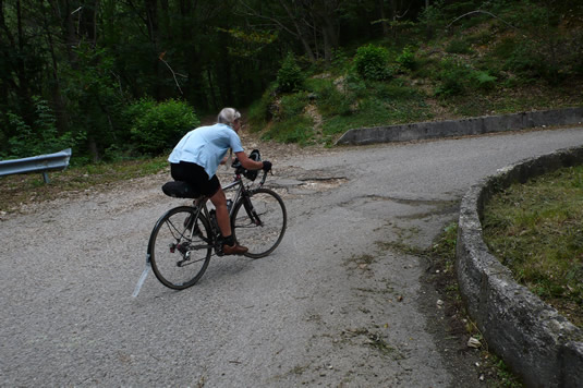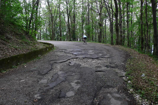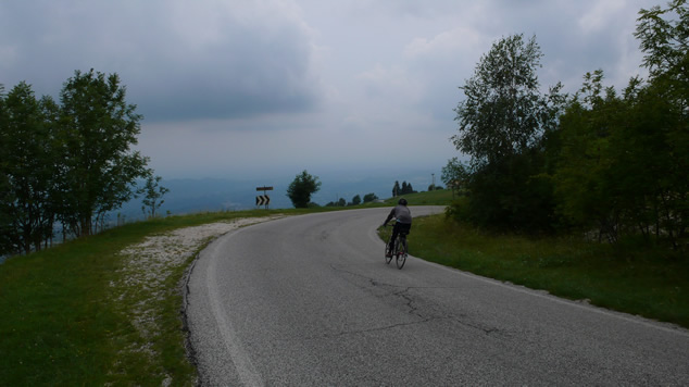 I thought we were headed to Valdobbiadene along the wine route, but John had other ideas, and we climbed and climbed up a tiny little road with New England like surface.
