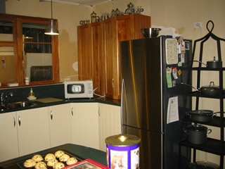 Bill finished up Tuesday night and I arranged for the electricians to come back out and finish off lights. It took two days due to issues with that darn transformer, and hopefully we can get things working with it soon. These guys will need to come back to finish the wiring in the new room, as well as install a ceiling fan, but otherwise, they are mostly done. The wiring in this house is a nightmare, and they've tried to clean things up, but we still have one overloaded circuit that I want to try to fix. We'll see if it is possible. Anyway, here is the mostly finished product, already in use. I have gas cooking, so I can now control the temperature and stop boiling everything. I have heaps of counter space, a double sink, big enough for the wok and rinsing, a pull out spray tap, and usable drawers and cupboards. We obviously still need to plaster, tile and paint, but look how close we are. And it is so functional. I can't wait for John to come home and start cooking.