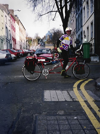 the bike, and I'd take pictures of John riding up the hill solo.