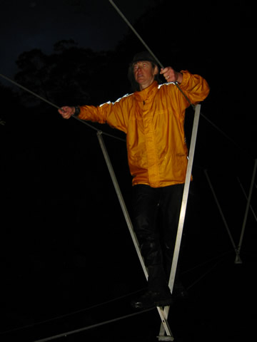 that 3 wire bridge, and the rain hammered off the tin roof all