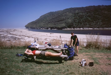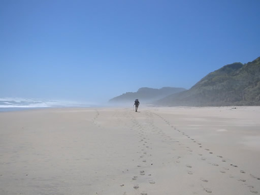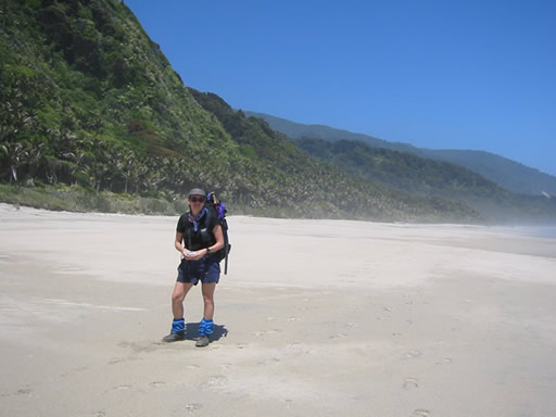 So after a long break, we packed up our gear, and headed south. The track follows the coast for quite a while, sometimes affording beach walking, but othertimes going around rocky outcrops. Walking on the beach was nice, but I'm glad we didn't have too much of it, as it is actually hard to walk on.