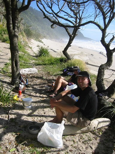 We arrived at the Heaphy Hut just in time to have a long leisurely lunch and then a quick swim in the river. The tides are very strong along the coast, so swimming on the coast is not recommended. The river would be our last chance to swim and the final leg was all along the coast.