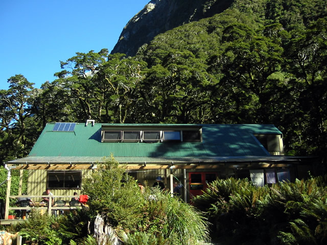 Mintaro Hut housed everything in one building. The bunkroom was upstairs, with a large kitchen and common area below. Solar panels provide power for lights for a few hours in the evening. As we passed the guided hut an hour or so before reaching this one, we could hear the hum and smell the fuel of the generators.
