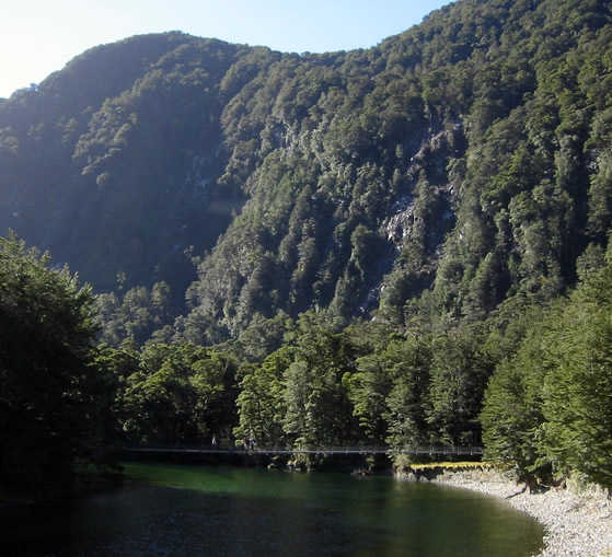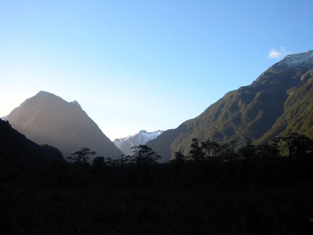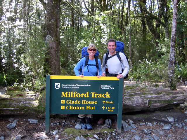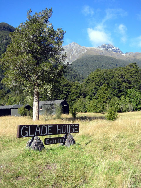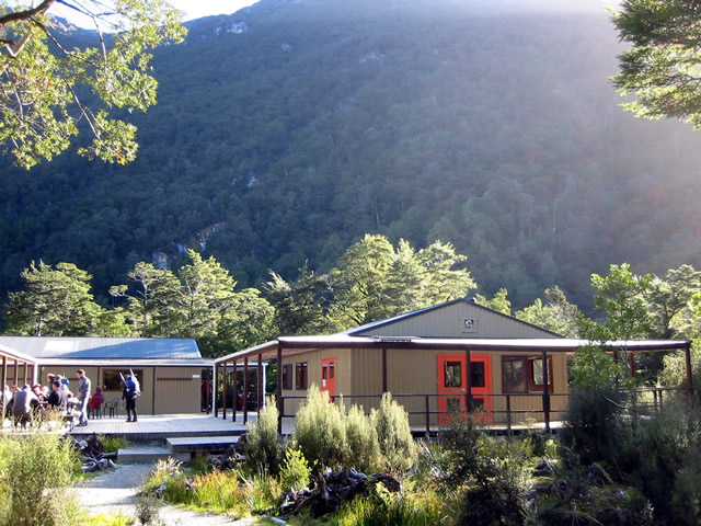 Glade House is the first overnight hut for guided walkers. Guided walkers can pay as much as $2100 per person to get a double or twin room with ensuite (and hot showers). The cheap rooms (4 share) are only $1700 per person. The guided huts have electricity (generated on the spot). Beds come complete with duvets. Shampoo, soap and towels are provided. All meals are prepared (bacon and eggs for breakfast, three course dinners). Beer and wine is available for sale. Packed lunches are provided each morning. The poor guided walker must carry his or her own lunch and rain gear in a day back (which is provided). There are additional guided huts for lunch breaks as well - these are also heated. But the poor guided walkers do have to swat their own sandflies ! I must admit being a teensy bit envious as we walked past this first hut and I could see the ensuite rooms with double beds, but then I reminded myself I was backpacking for a reason, and roughing it is part of the appeal. Besides our huts fees at $105 per person were a bit more keeping in the budget.