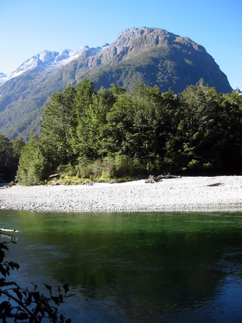 We arrived at Clinton Hut, the first hut for independent walkers after about 5 km. To be fair, if I hadn't seen the plush guided huts, I wouldn't really consider these huts as roughing it. Each of the bunroom buildings has about 20 bunks. Most huts on lesser walks tend to have one or two big platforms with mattresses, so you are sleeping next to strangers. These truly were individual bunks and had lots of space for spreading out gear. The kitchen hut had lots of cookers and sinks, a lovely warm stove for heat, and screens to keep the bloodsucking sandflies outside. The toilets were in another building some distance from the main buildings. (and of course did not have hot water or showers.)