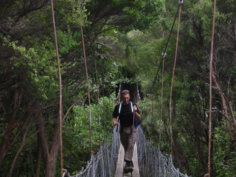 John and I have now stayed at Mahana 3 different times. We first stumbled upon the place last spring, and had a lovely two days, thanks to biblical rain that caused me to refuse to leave the warm cosy fire. We returned with John's mother and sister in November, and then this trip. We will likely make another visit when we cycle the track this autumn. This is my favourite backpackers. The hosts, John and Ann, are just some warm and friendly and make a fabulous meal and dessert. John is also a wealth of information about the local plants and the track. He told us all about the glow worms located a few feet from the cabin, and gave us tips for the hike the next day. |