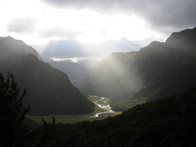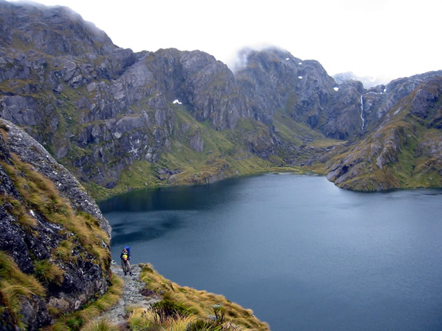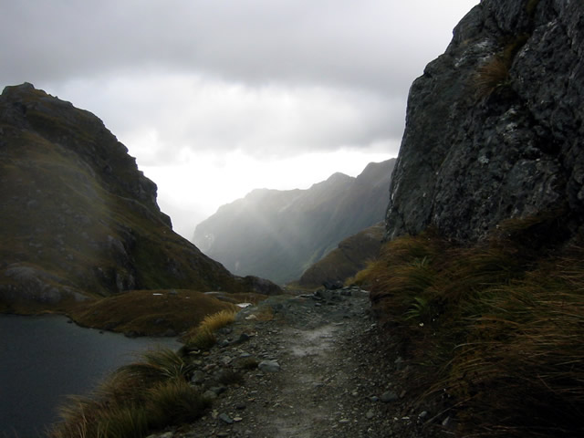 We left the Falls hut in drizzle, but it soon eased, and we thought it might even clear, but no such luck.