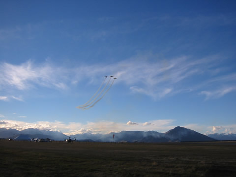 The next day, we started heading north, and stopped for lunch in Old Cromwell. Cromwell had been flooded when the dam was built, and the new town in a large ugly shopping centre. We had missed the old town when traveling through before, and decided to give it another shot. I'm so glad we did. I had one of the best soups I've ever had, and we met some very nice people. We then took a side trip to Bannockburn, where we must have climbed Mt Difficulty to get to the tasting room, and then tasted some wine. Next it was on to Wanaka, where the Air Show was to start later in the week. Our timing was great. We got to see practice, and didn't have to pay. And we had a place to stay. That would not be the case over the weekend.