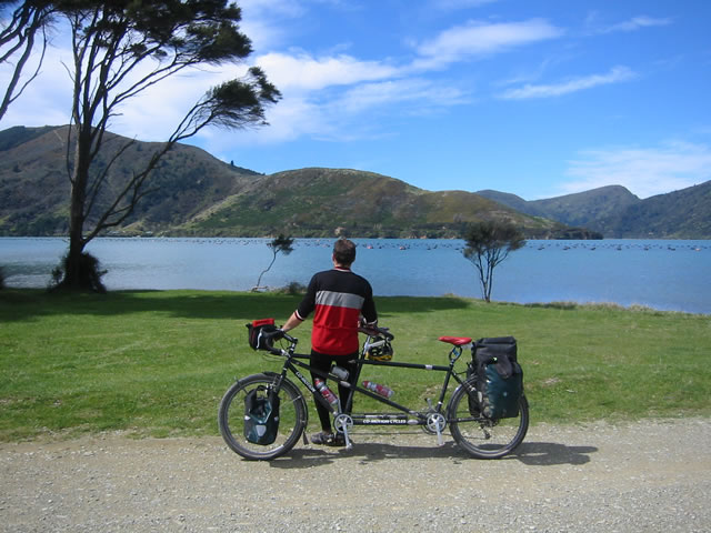 So John and I drove out to Pelorus Bridge and started our tour from there. The first day we rode from Pelorus to Te Mahia, where we caught a water taxi out to Hopewell. We'd stayed at the hostel there back in the autumn when we first attempted some of the Queen Charlotte Track, with Simon and Aria. We enjoyed it so much that we wanted to return and explore the area.