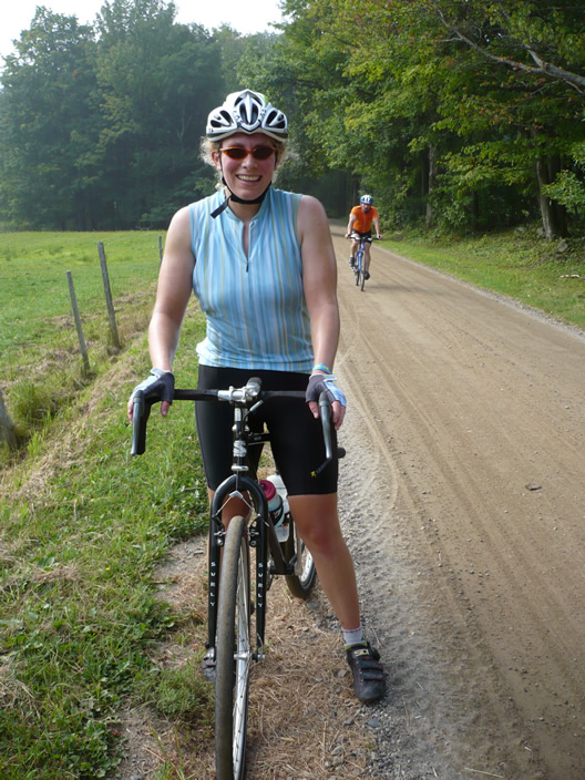 Dena seems like a smart gal, but somehow Pamela talked her into doing the 100km version on a borrowed single speed. She's a trooper.