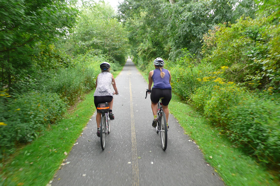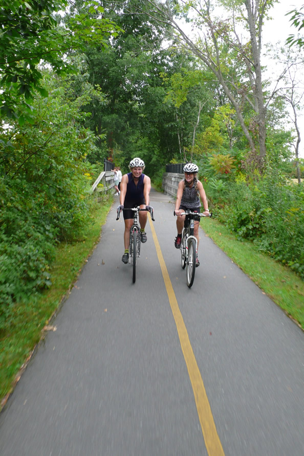 Here's the gals the next day still on the D2R2 single speed machines...enjoying a leisurely bike path stroll.