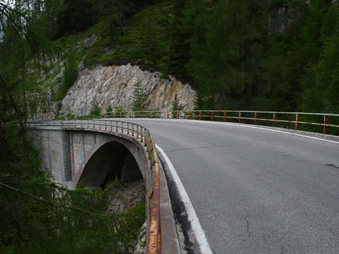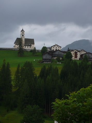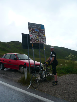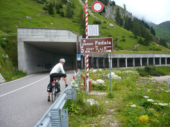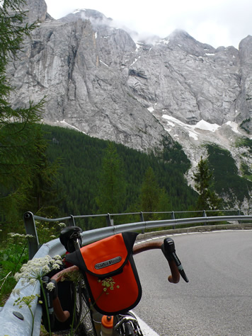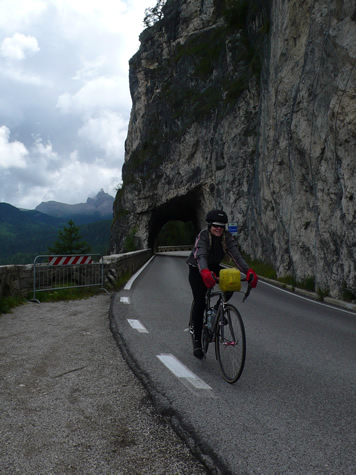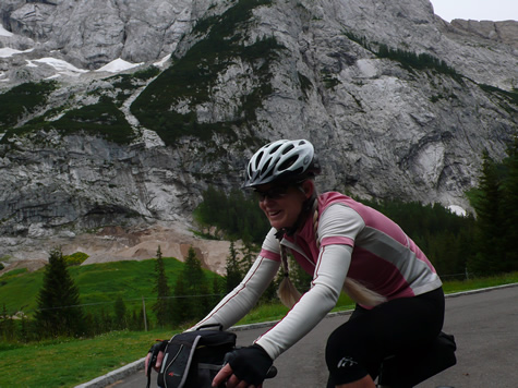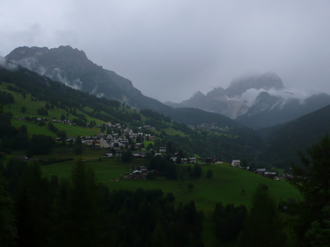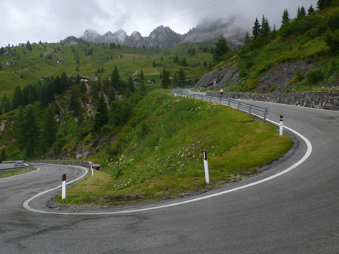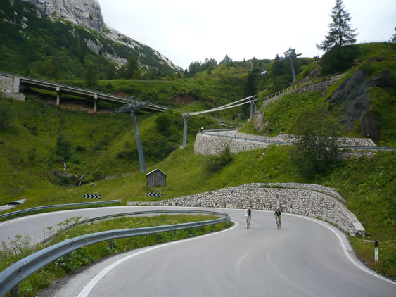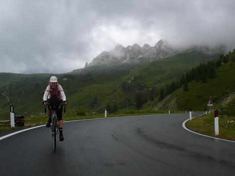 We rode to cool cloudy skies for our climb over the Fedaia, though the Malga Gorge and over the Giau.